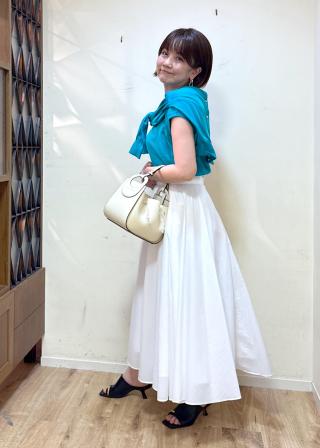 分量をたっぷりとったサーキュラースカートで、軽さとドレープ感といった素材の特性が最大限に活かされたアイテムとなっています。