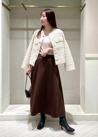 オンオフで活躍する同素材のトップス(品番:GGM34220)と合わせてワンピース風に着こなすセットアップstyleがオススメ。単品使いでも、シンプルなデザインのフレアスカートなのでどんなトップスにも合わせやすいのが◎。コンパクトなトップスと合わせると、スタイルアップして見えるかも。