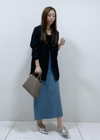 生地感もしっかりとしているため身体のラインを拾いにくく縦のIラインが綺麗に見えるシルエット。