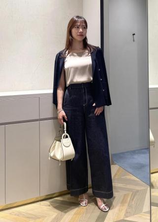 デコルテのデザインが、開きすぎず、つまり過ぎずの程よいネックラインで、ジャケットと合わせたスタイリングがおすすめです。