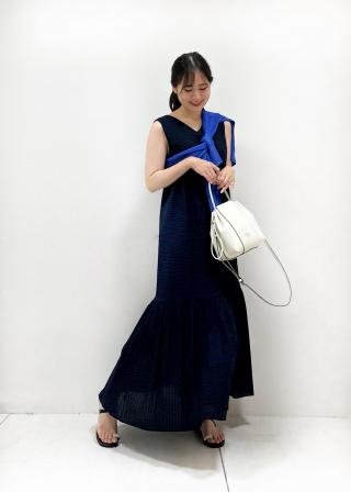 ノースリーブの際に肩掛けでも羽織りでもスタイリングが決まります