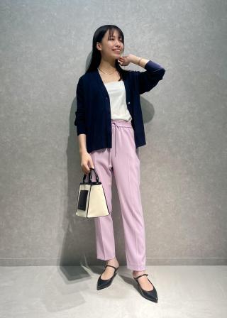 定番のピンタックシガレットパンツやポケット付きタイトスカートを合わせて、Tシャツの上からカーディガンを羽織るオンスタイルがおススメです。
