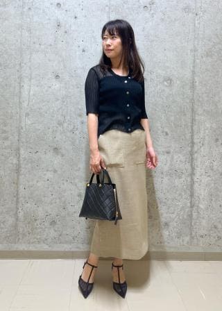 ショート丈なのでノースリーブのワンピースの上にさらっと羽織っていただいたり、ジャストウエストのタックパンツなどのボリュームのあるボトムに合わせていただくのがおすすめです。