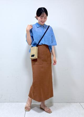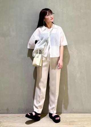 スッキリとした着丈感でボリュームのあるワイドパンツやスカートとのスタイリングがオススメです。フロントを開けて抜け感のある羽織りとしても素敵なコーディネートになります。