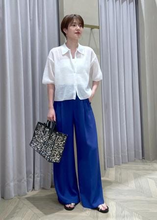 ゆったりとしたワイドシルエットでショート丈なので、コーディネイトのバランスがとりやすく、肌離れの良いシルエットが抜け感を持たせてくれます。
