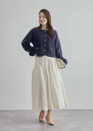 パールボタンが付いているのでアクセサリー要らずで華やかな印象!