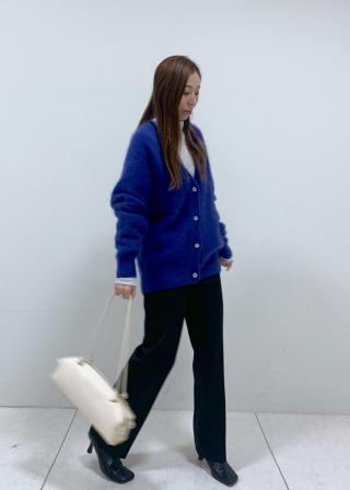 同素材でお作りしているノースリーブベスト(品番:GGM34240)をインナーに合わせたリッチなアンサンブルスタイルが今年らしくておすすめです。ロング丈でどんなボトムともバランスが取りやすい万能カーディガンです。