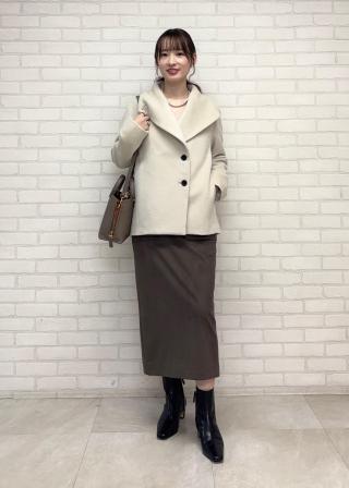 プリーツスカートやストレートシルエットのスカート、パンツともバランスよく合わせられるサイズ感に仕上げています。