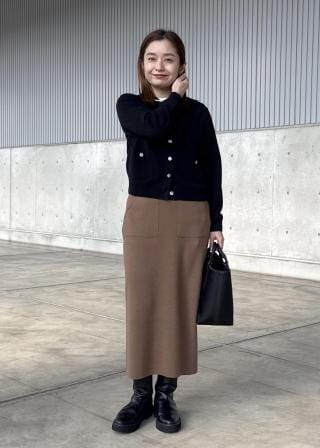 コンパクトで薄手のカーディガンですと、むちっと感が気になるのですが素材が中肉なのでボディラインが気になりにくく、着膨れして見えなかったです◎