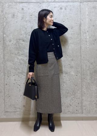 コンパクトで薄手のカーディガンですと、むちっと感が気になるのですが素材が中肉なのでボディラインが気になりにくく、着膨れして見えなかったです◎