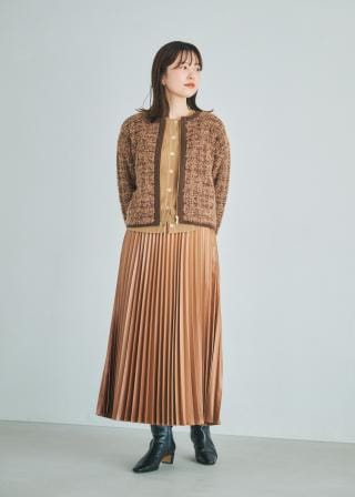 上品さと軽やかさを兼ね備えた、ツイード調ZIPカーディガン
