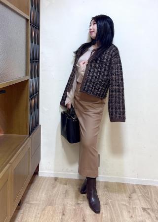 基本的にカジュアルが好きですが、ツイード系はかっちりした印象になるため避けてましたが、こちらは前がボタンでなくジップというところに惹かれて購入〜!デニム合わせが好きです!!