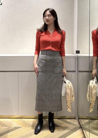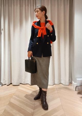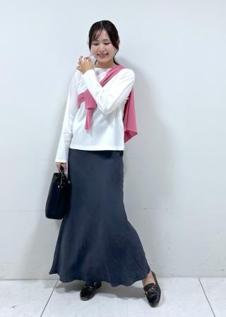 タイトスカートと合わせれば、コンパクトなシルエットが際立ち、バランスの取れた美しいスタイリングに。ウエストインすることで、より女性らしい印象になります。