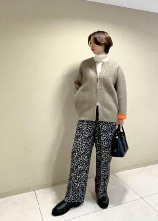 ドロップショルダーでアームはゆったりとしていて、中に厚みのあるニットも着て頂けます。