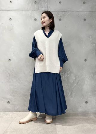 シャツワンピースやタートルネックニットなどとのレイヤードスタイルがオススメです!