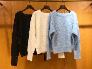 ・ホワイト(10)/サックス(48):上質なベビーアルパカの糸をループパイル編みする事で軽さのある中にふわっとした凹凸感が特徴のニット