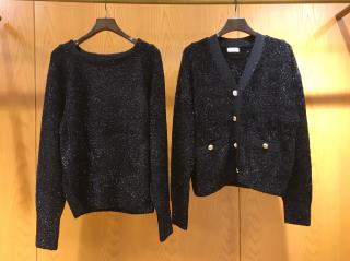 ・ブラック(01):ラメ糸のファンシーヤーンとウールをミックスした光沢の鮮やかなニットを使用。