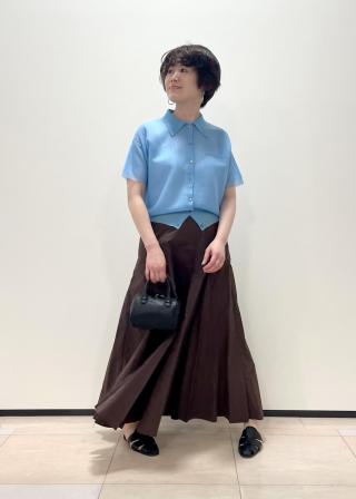今年らしいヌードな印象のアースカラーでまとめてみました!シアー素材とサテンの組み合わせが夏らしいスタイリングです♪カラーボトムスなどと合わせるのもお勧めです◎