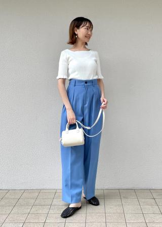 スカートでもパンツでもスタイリングしやすいアイテム。Tシャツだとちょっとカジュアルすぎるかも、というシーンにも活躍します。