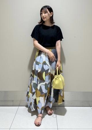 ブラックは同素材のスカート(品番:GGC23400)とセットアップでワンピースのように着ていただけます。1枚で華やかなトップスなので、ボトムにタックインしてスッキリと着用していただくのがおススメです。デニムなどのカジュアルアップスタイリングも。