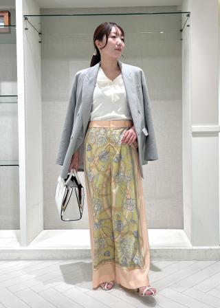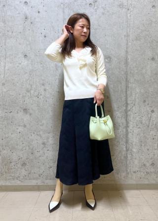 華やかなシルエットのサーキュラースカートや、すっきりとしたIラインシルエットのスカートに合わせたフェミニンなスタイリングが素敵です。ジャケットインに合わせるとシャープになりすぎず優しい印象に。