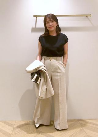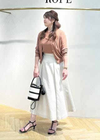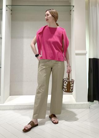 ONでもOFFでもどちらのシーンにも合わせやすいシンプルなニットなので、セットアップのインナーとして合わせたり、同シリーズのカーディガンとアンサンプルで合わせたりと着回しがききます。裾もリブではないのでボトムにインしてもアウトにしても綺麗に着用いただけます。
