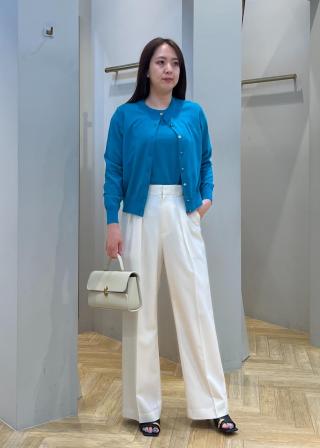 オンオフどちらでも合わせやすいシンプルなニットなので、ジャケットのインナーとして合わせたり、同シリーズのカーディガンとアンサンプルで合わせたりと着回しがききます。裾もリブではないのでボトムにインしてもアウトにしても綺麗に着用いただけます。