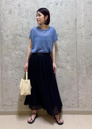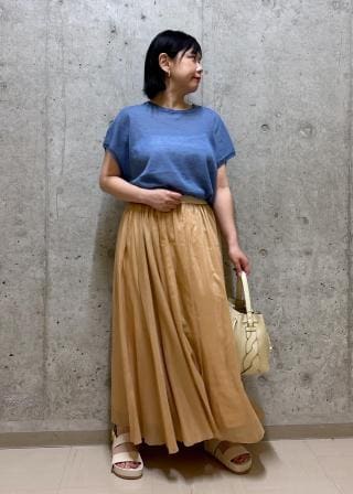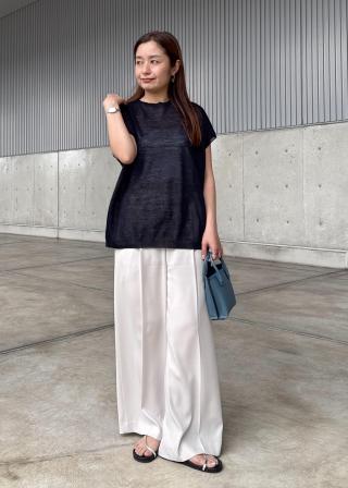 キレイ目パンツやポケ付きスカートと合わせ、オンオフおすすめしたいトップスです。シンプルなクルーネックなのでジャケットのインナーとしても合わせやすいです。