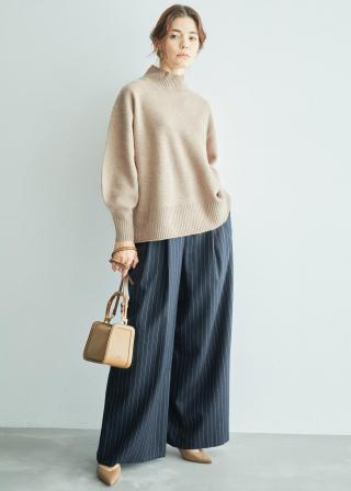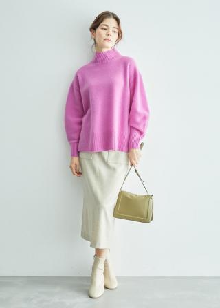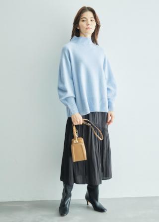 【カシミヤブレンド】ワイドスリーブハイネックニット