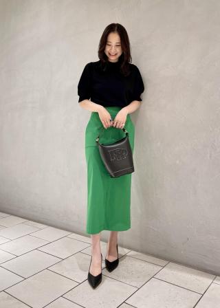 フェイクレザーのスカートを合わせるのが私のおすすめです。