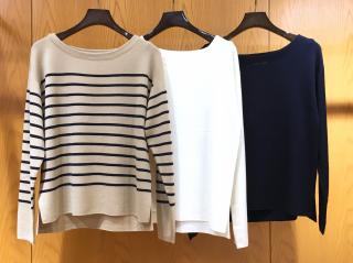 アイボリー、ネイビー、キャメルボーダーの3色展開