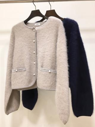 原料のフォックスは、繊維長と白度にこだわった原毛を厳選し、毛足のタッチが優しい風合いに仕上がるよう設計し、さらに極細のカシミヤを混紡させることでニットの芯まで柔らかで滑らかでどんどん風合いや毛足のふんわり感が増していきます。