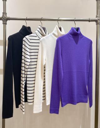 ベーシックなリブのタートルネック。無駄のないデザインだからこそ衿の高さや繊細さに拘りました。飽きずに長く愛用していただけるアイテムです。