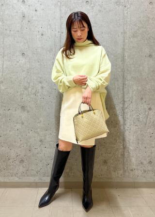今年らしいミニスカート、ロングブーツとのスタイリングがオススメです。リバーコートとの相性も抜群です。しなやかな肌触りと高級感のある仕上がりが特徴の上質タートルネックニットは、シンプルながら洗練されたデザイン。オフィスでもプライベートでも幅広く活躍します。