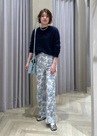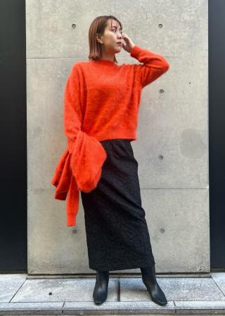 ベーシックなウールパンツや光沢のあるスカート等、華やかなニットを主役にしたスタイリングがおススメです。同シリーズのカーディガン(品番:GGK93120)とアンサンブルでも着用いただけます。