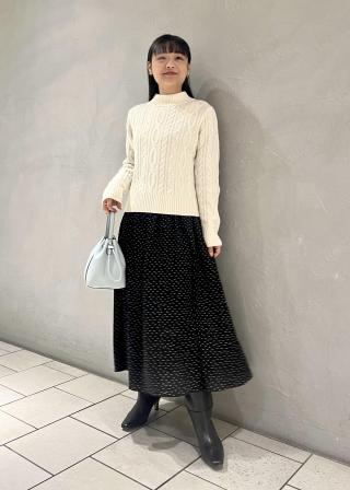 ケーブルが可愛いです。スカートにもパンツにも合う丈感なので、いろんなボトムに合わせられそうです。