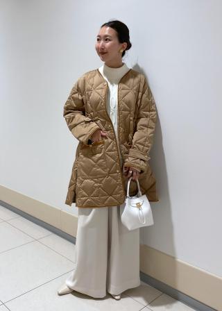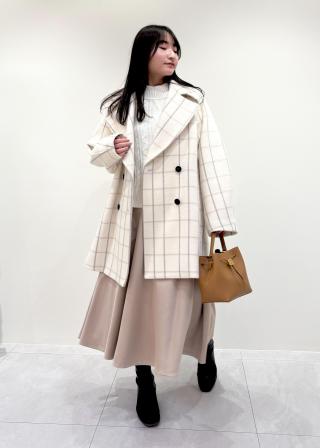 コンパクト過ぎず、大きすぎずバランスのとりやすい着丈、身幅の設定になっているので、さまざまなボトムにあわせやすくなっています。今年らしくリーンシルエットの着丈の長いスカ—トとのあわせもおすすめです。
