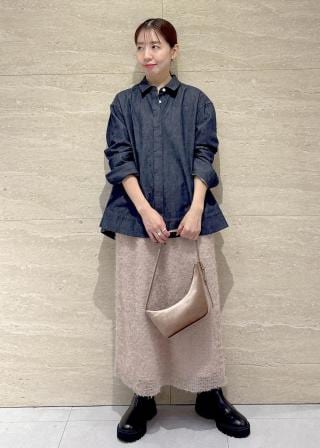 ブルーとインディゴの2色展開で、柔らかさと程よいハリを備えたデニム素材は着るほどに身体になじむ風合いが魅力です。