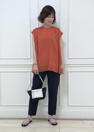 ボトムにインしてもアウトにしてもバランスの良いブラウス。ジャケットのインナーとして、オフィスでも活躍します。