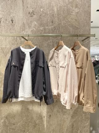 軽さのあるシャツブルゾンは金ボタンでアクセントを加えたワークテイストの羽織りアイテム。ドローストリングでギャザーを寄せると、プルオーバーのような感覚で着られるシャツブルゾンです。体から離れるフォルム感が豊かさを演出。今シーズンらしいショート丈も新しいブルゾンシャツとして活躍。カラーと組み合わせによりどのシーンでも万能に対応できるアイテムに仕上げています。ゆったりしたサイズ感で、夏は半袖Tシャツを中に着てもごわつかず、秋はリブニットへの羽織りにもおすすめです。