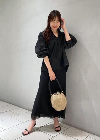 ギャザーで分量感のあるブラウスです。襟付きでスキッパーなので、首元はスッキリ見え、女性らしい着用が可能。着丈もアウトでもきまるデザインで、ボトムを選ばない万能ブラウスです。