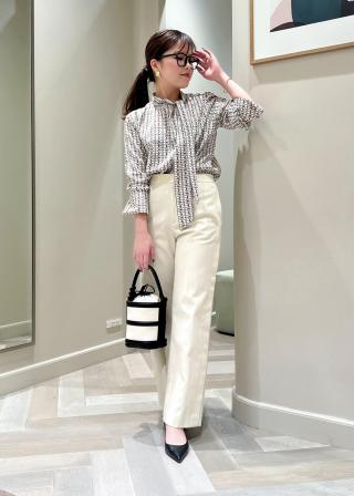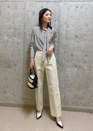 【雑誌掲載】モノグラムプリントブラウス/無地ボウタイブラウス