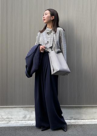 ボウタイ部分もボリュームが出すぎない為、リボンや固結びしても甘くなりすぎないのもポイント。