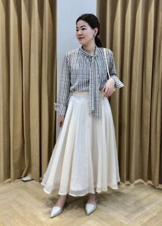 ボウタイ部分もボリュームが出すぎない為、リボンや固結びしても甘くなりすぎないのもポイント。