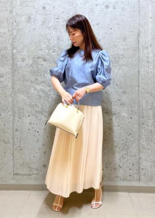 袖にたっぷりタックを入れ、大きなパフスリーブが特徴のプルオーバーブラウスです。ウエストに入れたダーツが細見え効果があります。