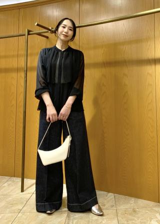 1枚で華やかなデザイン性のあるブラウスなので、シンプルなボトムと相性が良いです!