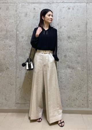 1枚で華やかなデザイン性のあるブラウスなので、シンプルなボトムと相性が良いです!