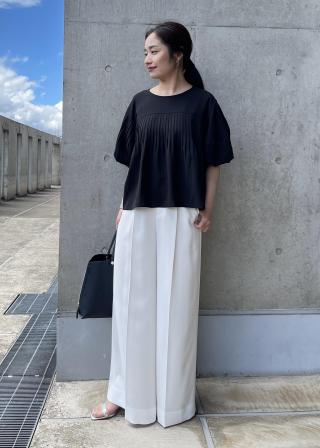 ボリュームのあるお袖ですが、甘くならず落ち感があるのでスッキリ着ていただけます。