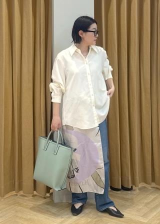 オーガンジーシアーボリュームスカートの同色合わせでインにしたスタイリングがお勧めですパンツとの合わせでは、上から羽織るようなスタイリングもおすすめです。
