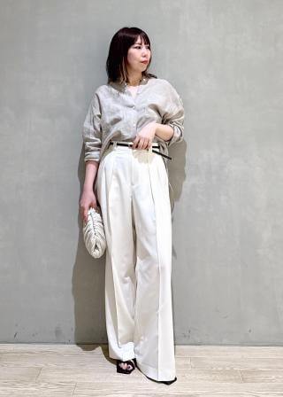 同素材展開のプリーツスカートとのセットアップや、サテンパンツなどサラリとした素材感との合わせもお勧めです。